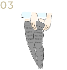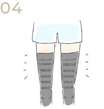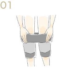 太もものラインは前に、ふくらはぎのラインは後ろにくるようにご着用ください