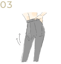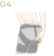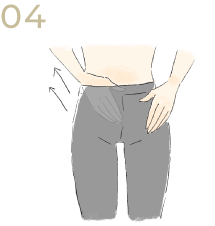 ウエスト部分を押さえ、もう片方の手で太もも~お尻のお肉を下から上に入れ込みます。