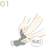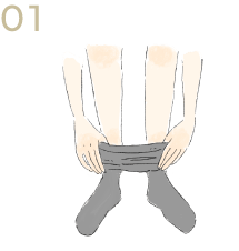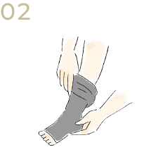 ソックスをたぐりよせて、つま先を入れます。