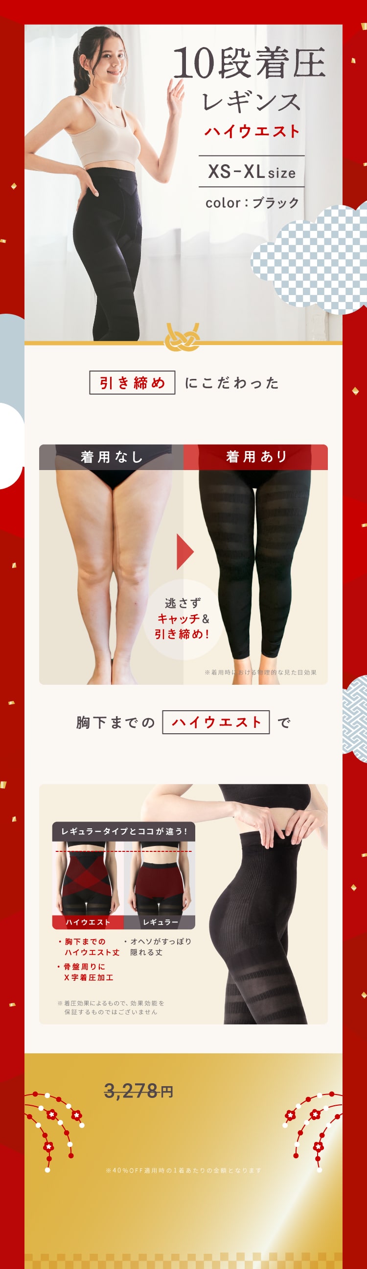 脚部に10段階の着圧ラインを施した着圧レギンス。