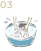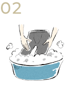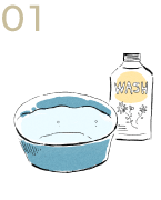 大きめの洗面器などにぬるま湯を入れ、製品を入れる前に適量の洗剤を溶かしておきます。※1