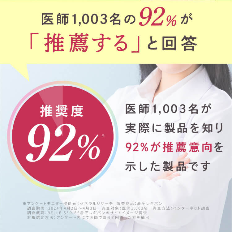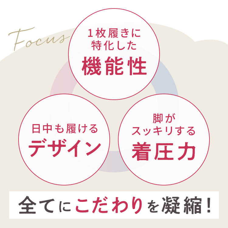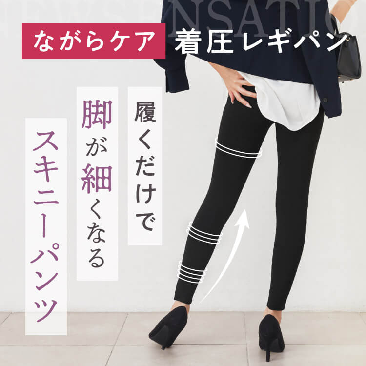 お出かけ時(長時間)に着用していただけるよう設計された着圧レギパンになります。強すぎない着圧に加え着心地のいい生地を採用しております。