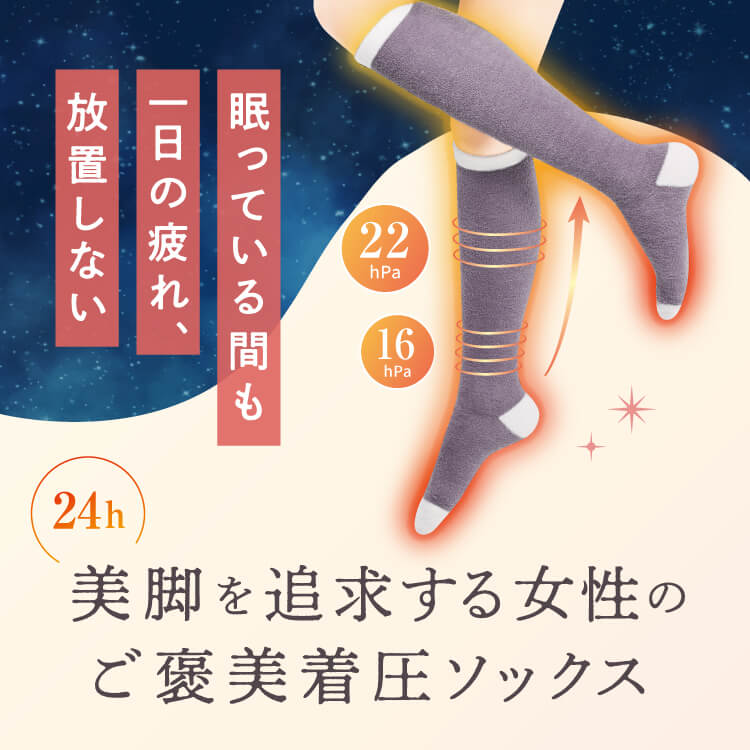 就寝時用のソックスですが、1日中ご着用いただけます。