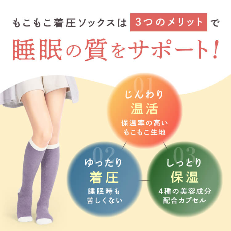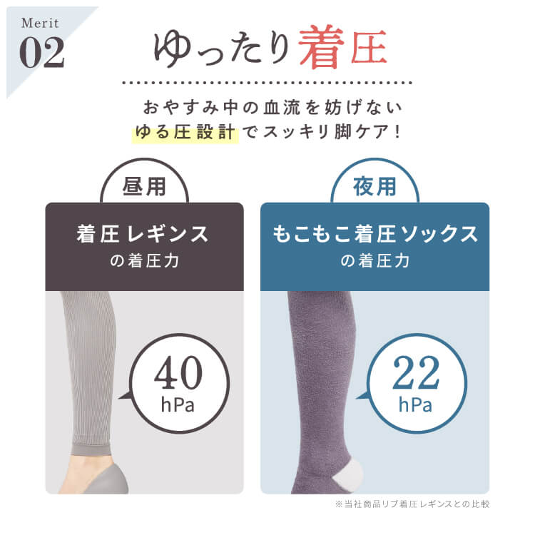 もこもこ着圧ソックスはゆったりした着圧感ではありますが、併用すると着圧感が増しますため、お体の様子を見ながらご使用ください。