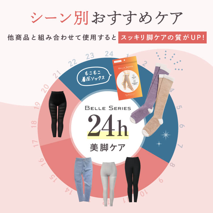 弊社の着圧レギンス(10段着圧レギンスや10段着圧レギンスハイウエスト)と併用いただくと着圧ケアをしながら冷え対策もできるため、おすすめです。