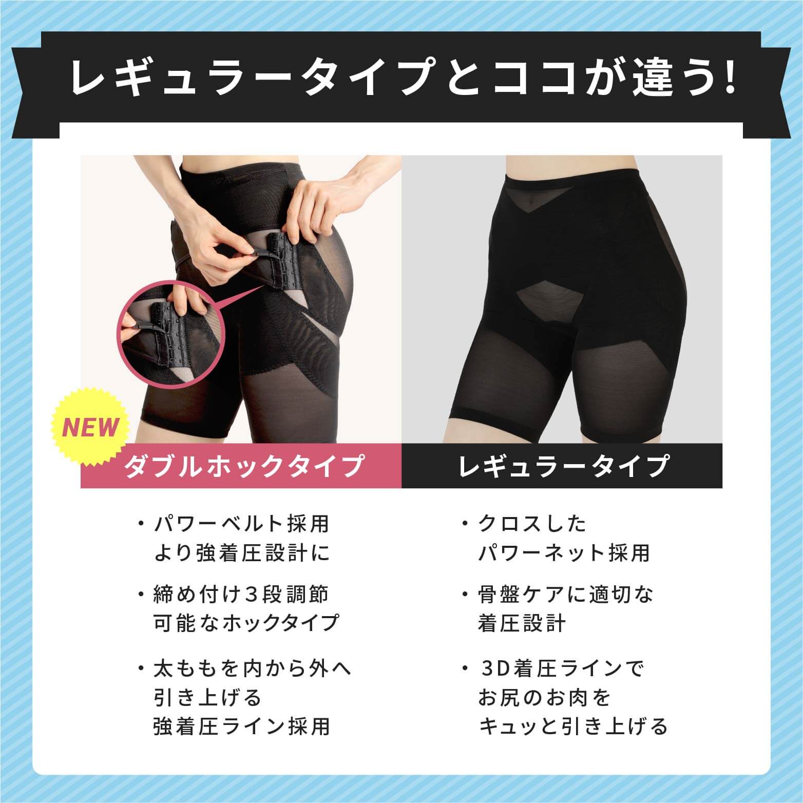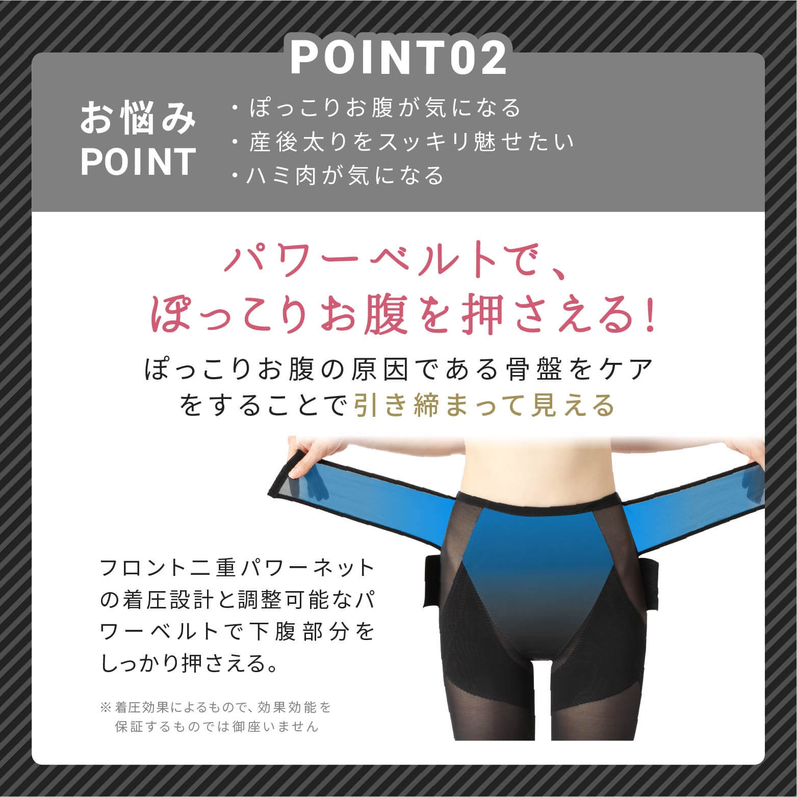 伸び縮みするパワーネットが体に合わせて無理なくサポートします。着圧が強ければ良いというわけではございませんので、自分の体型に合ったサイズをお選びください。