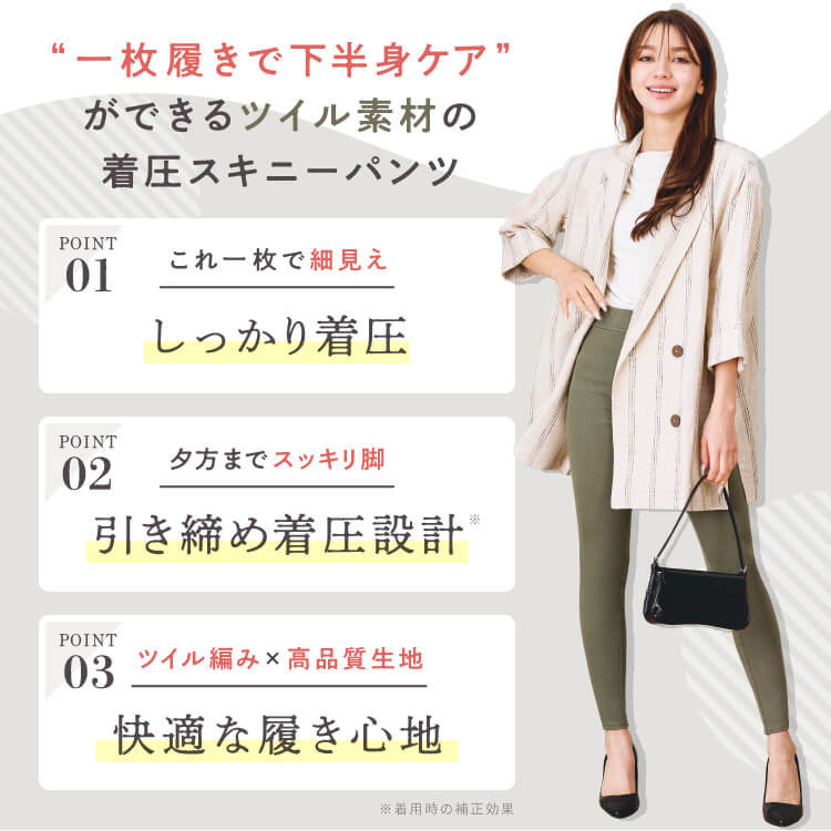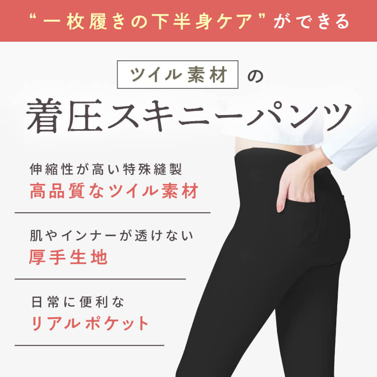 お出かけ時(長時間)に着用していただけるよう設計された着圧ツイルパンツになります。強すぎない着圧に加え着心地のいい生地を採用しております。